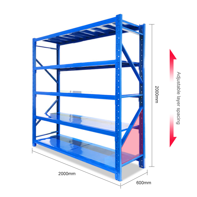 Medium-sized shelves are suitable for manual access to factories or warehouses, without the need to cooperate with forklifts and other ancillary equipment, saving equipment costs. • Galvanized steel laminate, light structure, high bearing capacity; • The surface of the laminate is wear-resistant and scratch resistant, and has good aesthetics; • Laminated modular production, standard width 300mm, easy to assemble and replace; • Beam and pillar card type connection, convenient assembly; • A wide selection of accessories Specification of Medium-sized Shelves